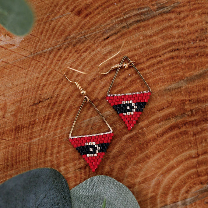 Indigenous Beaded Gold-Lined Triangle Mini Studs – 18K Gold Plated