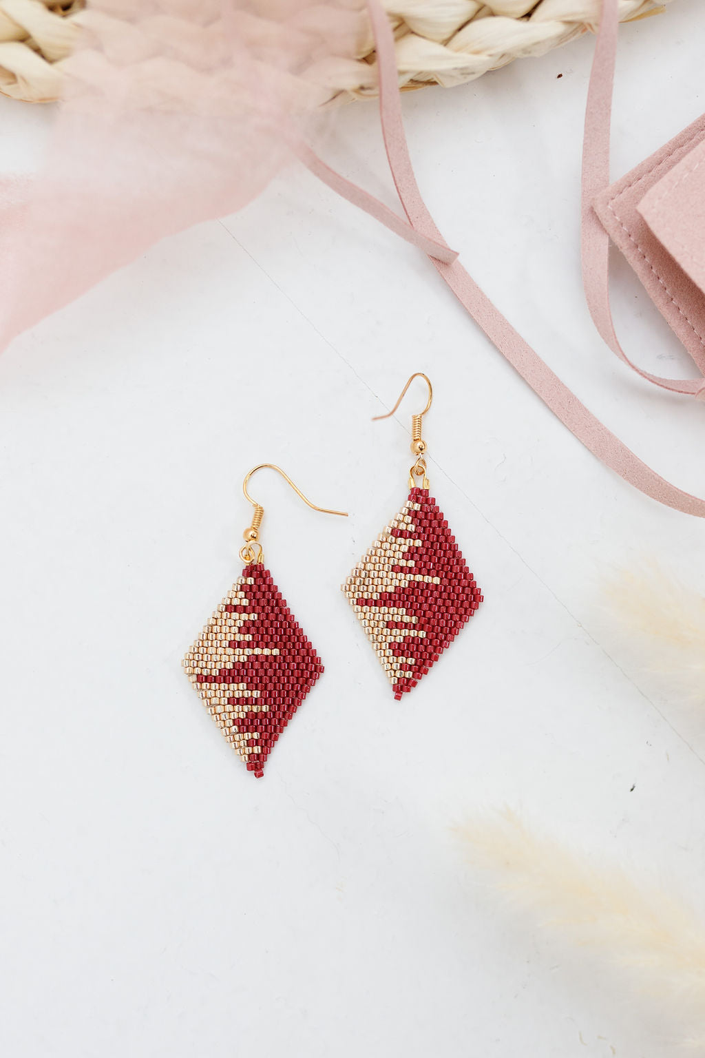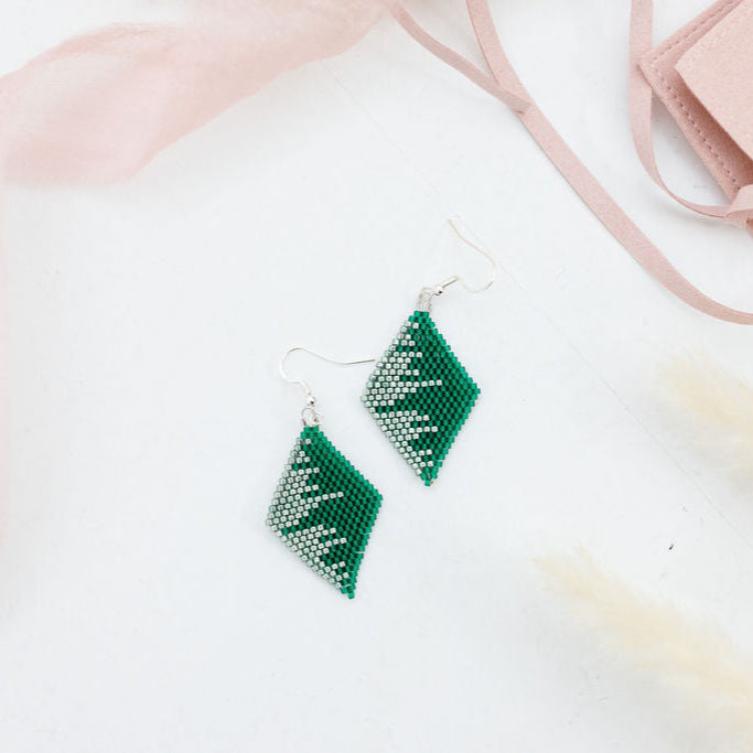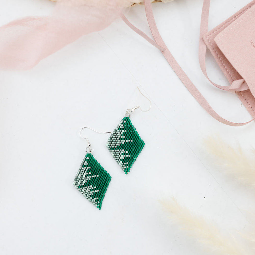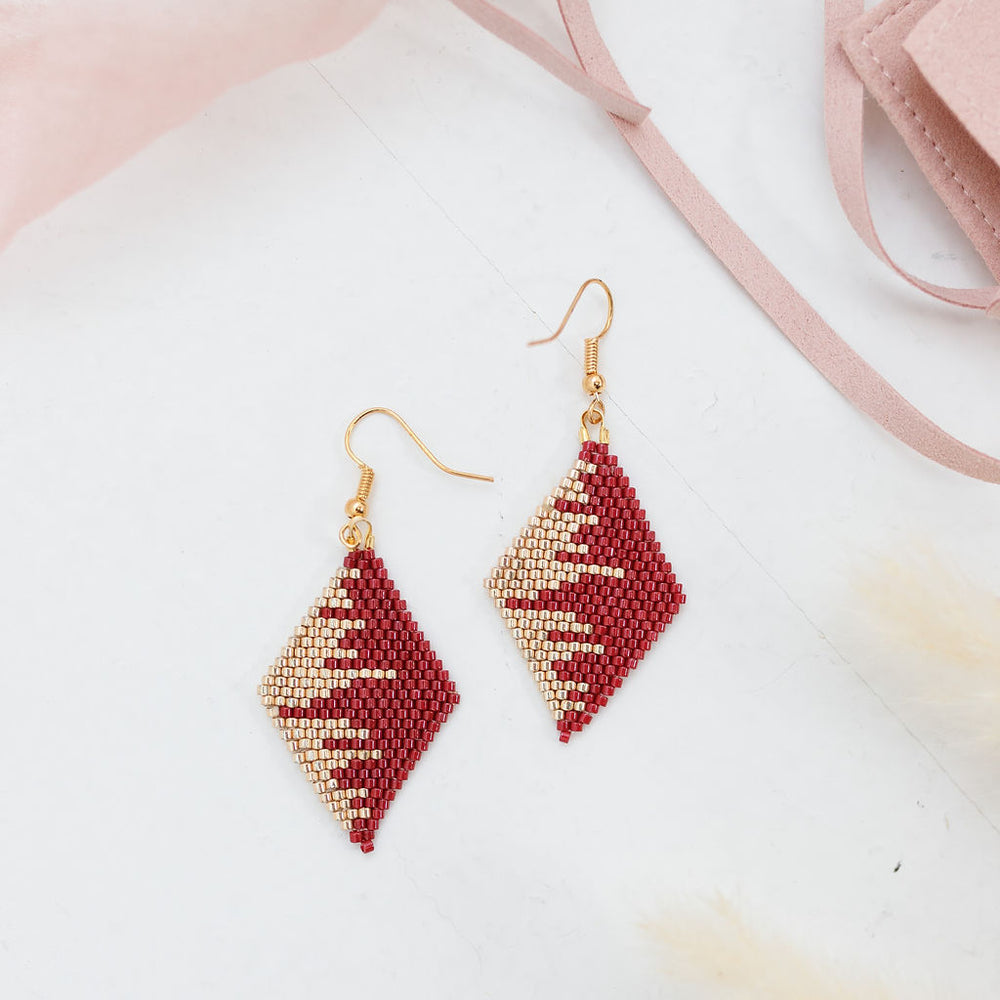 These handmade Indigenous diamond earrings combine traditional beadwork with a modern, luxe finish. Each pair is meticulously beaded with premium Miyuki Delica beads, accented with metallic tones for extra shine, and finished with 18K gold plated hardware. Lightweight yet bold, they’re designed to elevate any outfit.