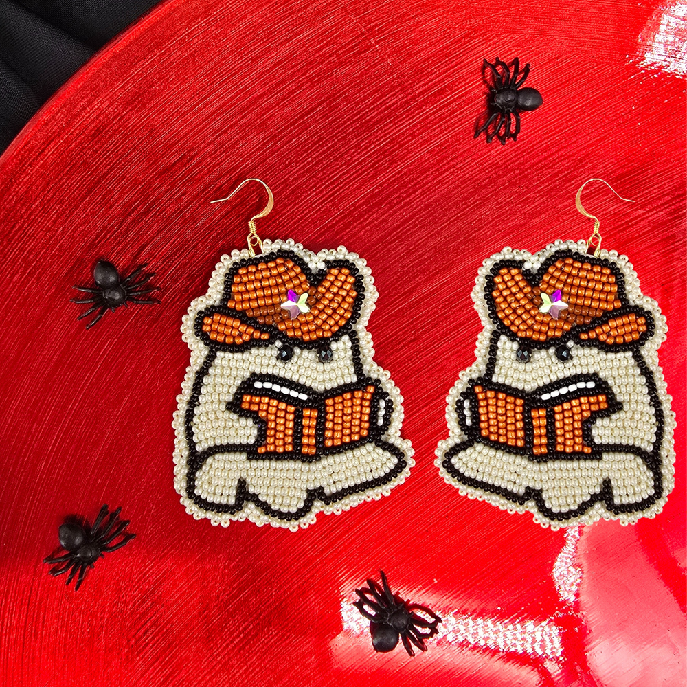 Spooky season, but make it scholarly. These Yeehaw Book Ghost earrings feature a hand-beaded ghost rocking a cowboy hat and reading a book — because even spirits deserve a good plot twist.